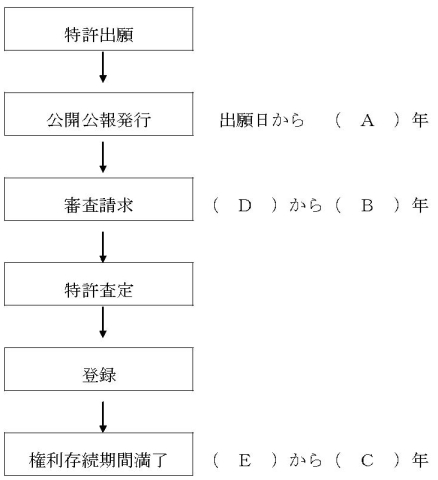 下図の(A)に入る数字は次のうちどれ? 平成17年4月1日現在の特許法に基づき解答して下さい。